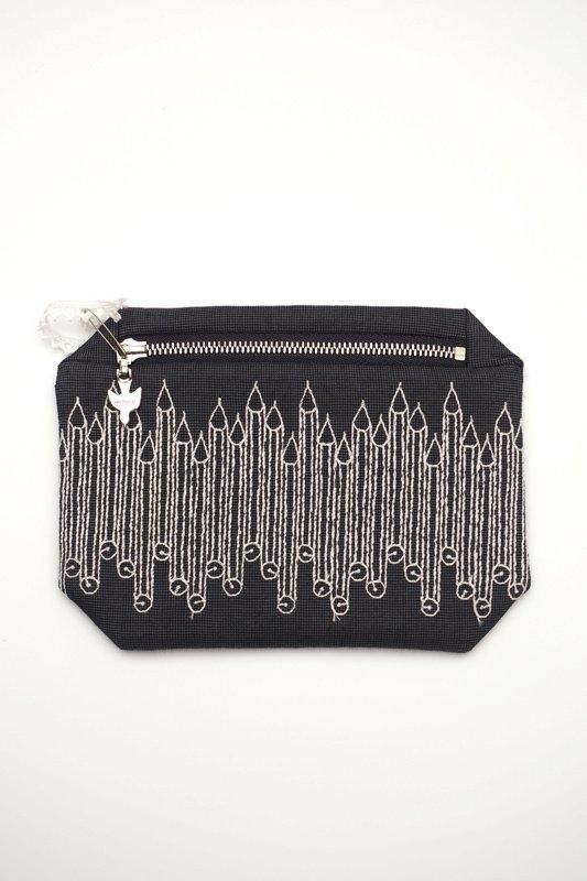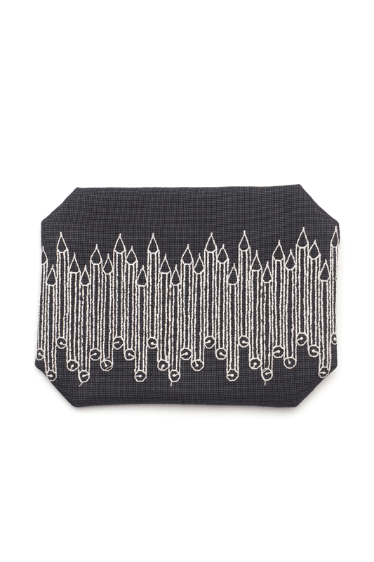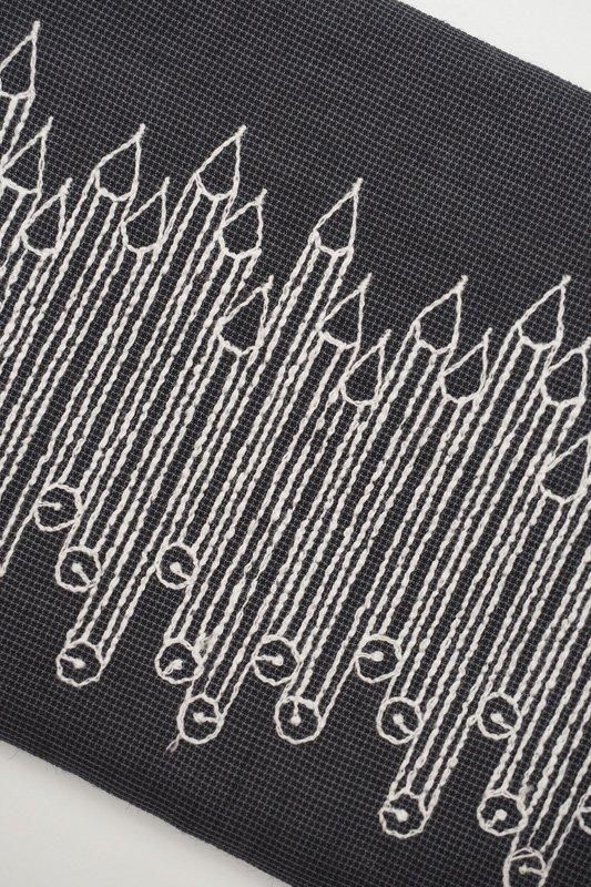 繊細なタッチで波のように連なる鉛筆をモチーフに、刺繍で表現しています。