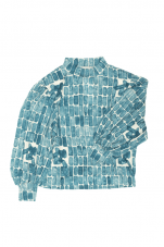 細番手のウール糸で織り上げたフレンチスリーブのブラウス。襟元にケープのようなディテールを施したデザインが特徴です。ウールながら薄く、軽やな質感で様々な季節にお召し頂けるテキスタイルです。とろりとした落ち感があり、フォーマルの場にも馴染む一着です。
