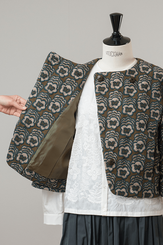 mina perhonen happy bloom フレアスリーブノーカラージャケット