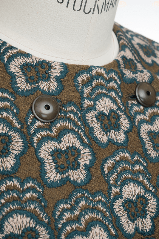 コットンベルベットをベースに、重なるお花の姿を立体的に刺繍で表現しています。