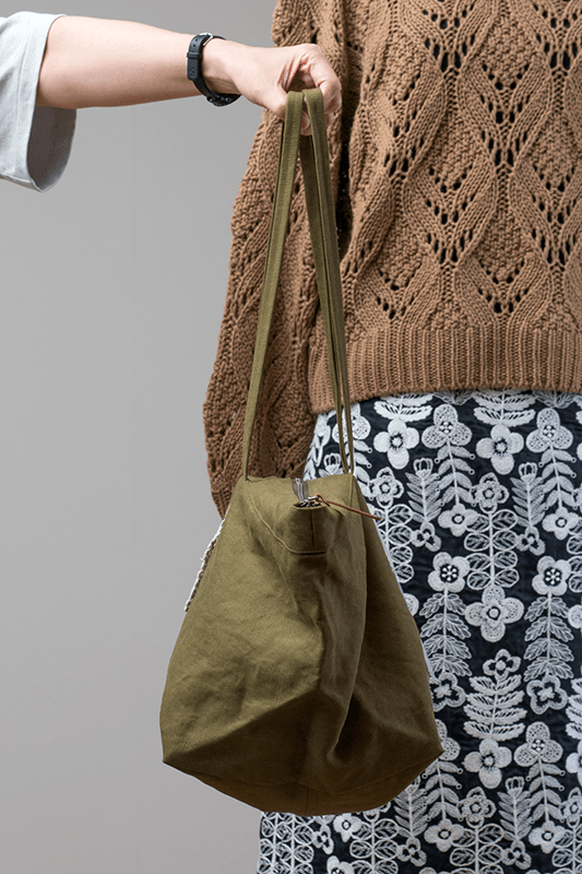太番手のリネン糸を平織りにした生地を使用した、くったりと柔らかな質感のトートバッグです。