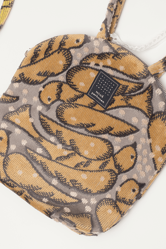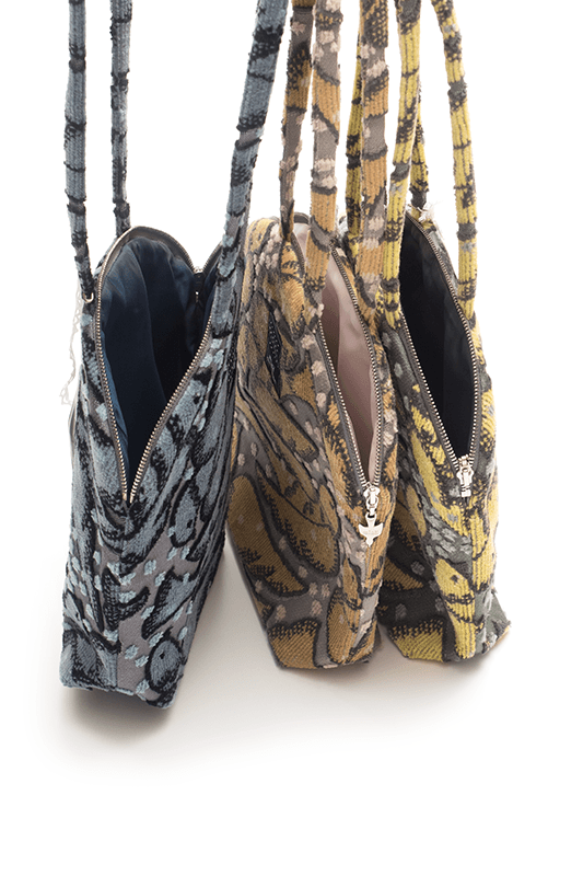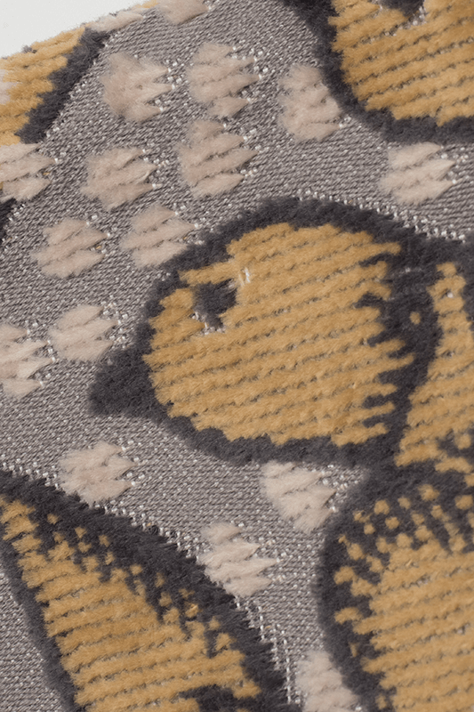 風の流れに乗って舞っている鳥たち。風と戯れるように羽ばたく鳥たちをベルベットジャカードで表現しています。