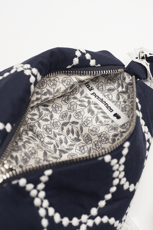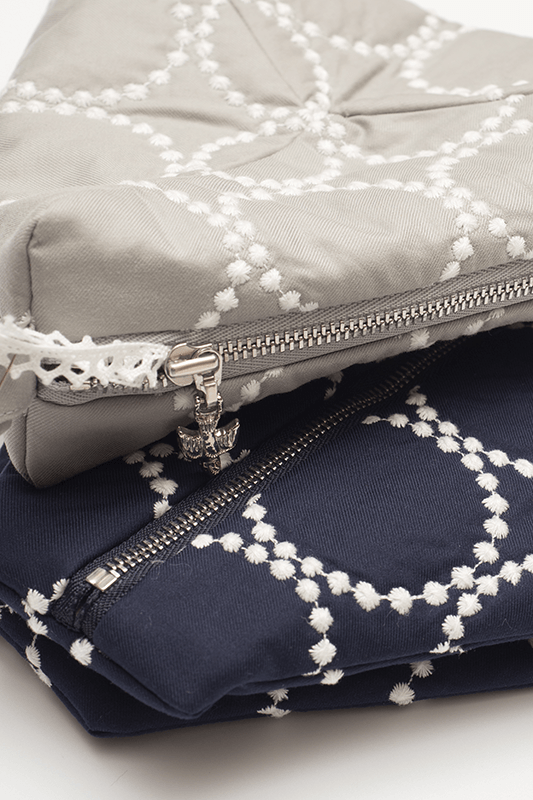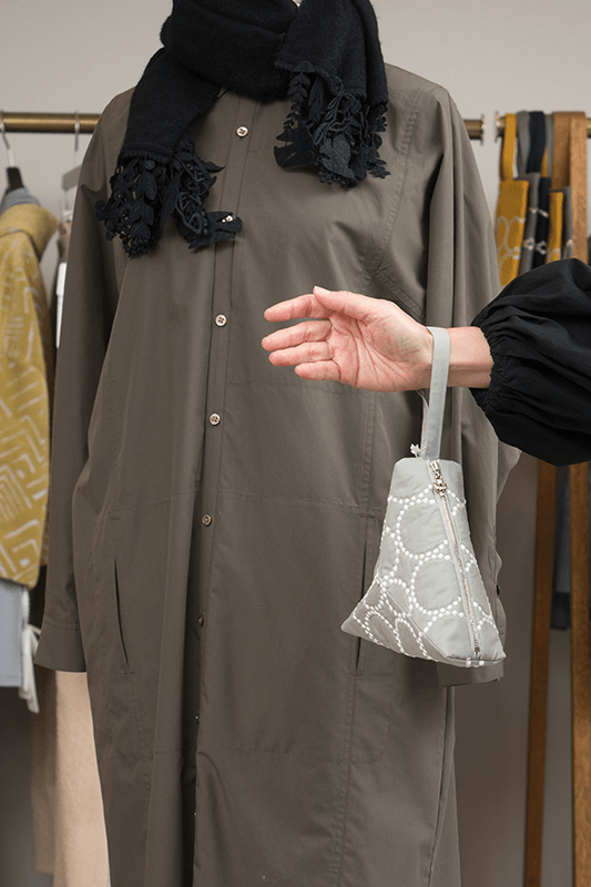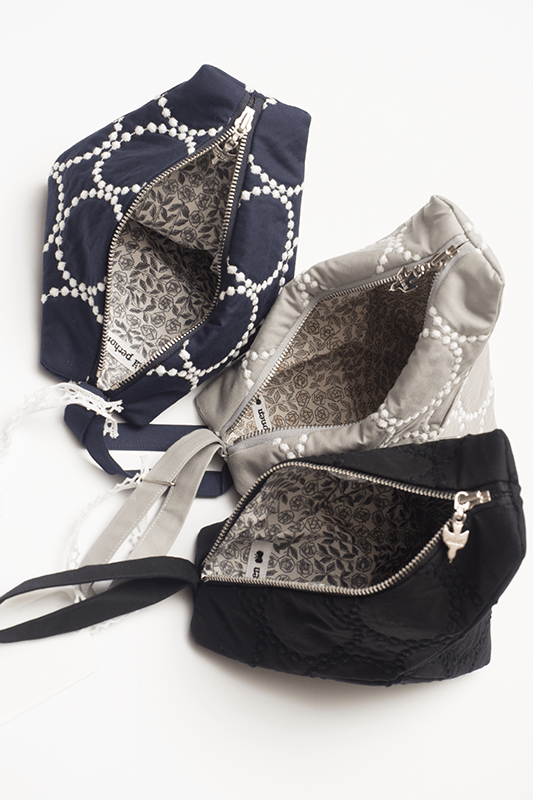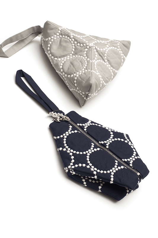 結晶体をイメージしてデザインされたポーチです。中に物を入れると三角形のフォルムに、畳むとパタンと六角形の形になります。ポーチとしての他、畳んでコンパクトに持ち運べるので、旅先では小さなバッグとしても活躍してくれそうです。