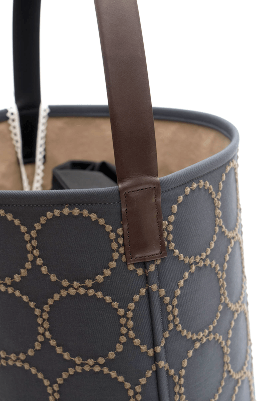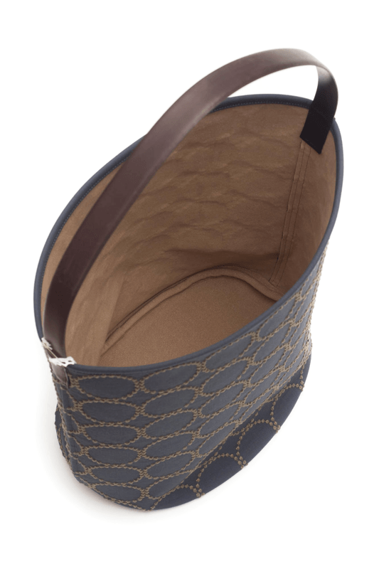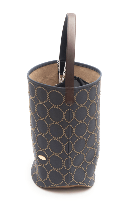 持ち手と底はレザーを使用し、開き口が広いことで物を取り出しやすく便利にお使いいただけます。